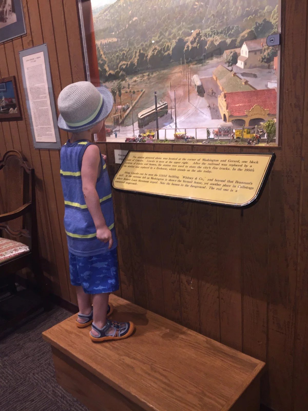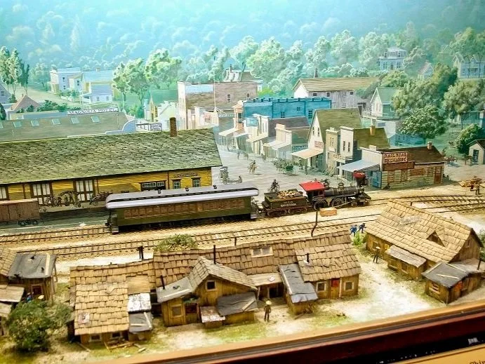 The Electric Train Diorama depicts the interurban railroad that connected Calistoga to the San Francisco Bay Area from 1912 to 1937. It began in Vallejo, where ferry passengers from the city continued their journey by rail.