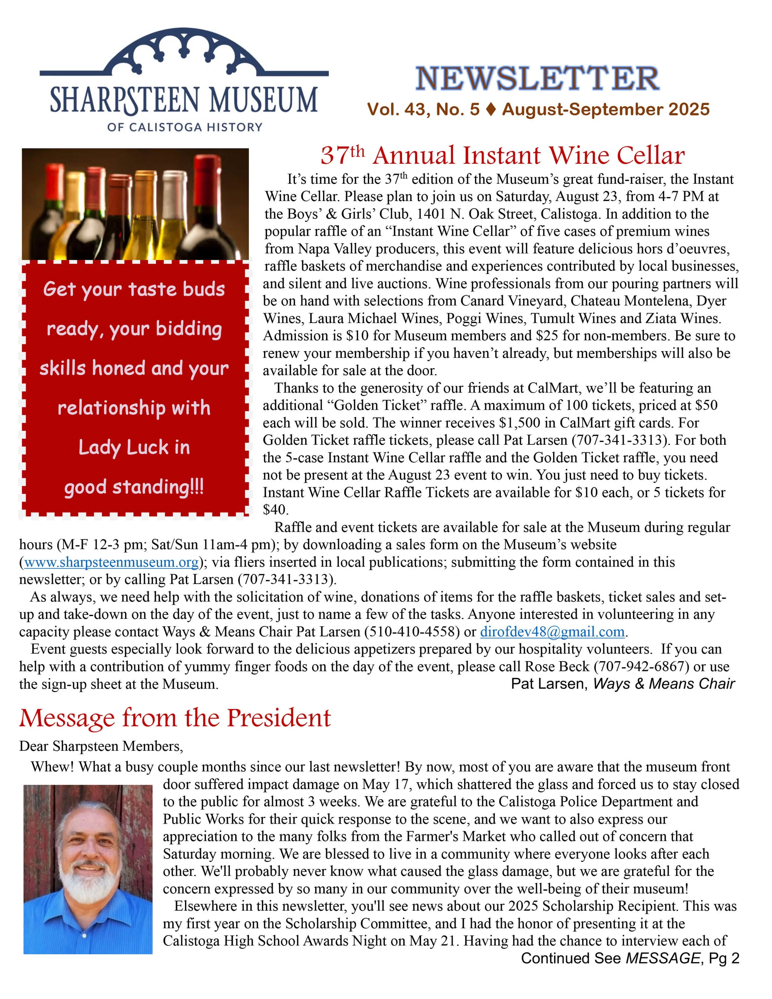 Our bimonthly email newsletter informs you about upcoming exhibits, special events, behind-the-scenes stories, local history highlights, and ways to get involved. It’s the easiest way to stay in the loop and support Calistoga’s rich heritage.